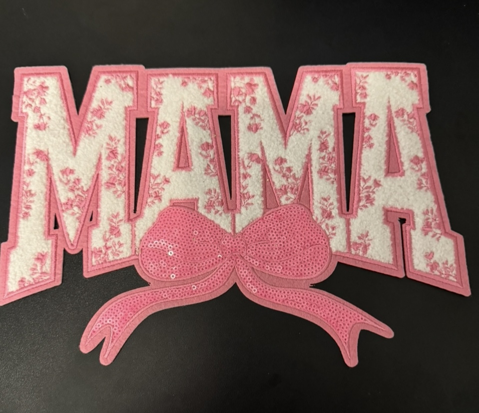 Pink Mama iron on Chenille patch